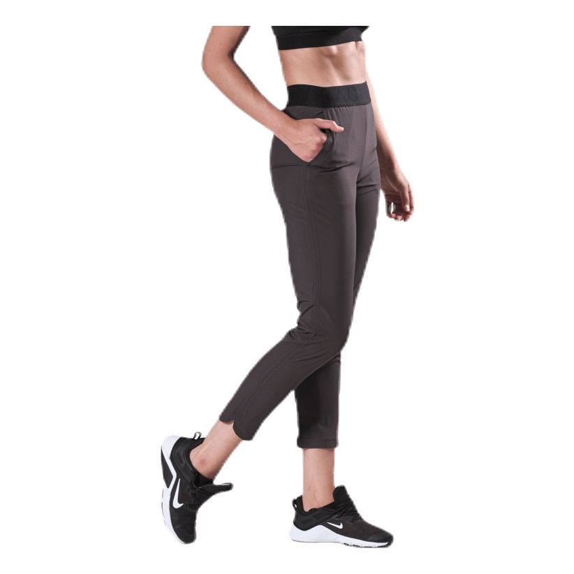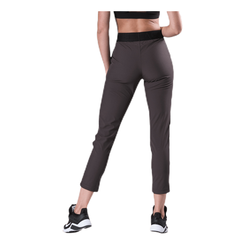 Tkane raztegljive vadbene hlače s širokim pasom, ki ustrezajo več vrstam vadbe ali po vadbi. Dva stranska žepa in nekoliko krajše noge, ki imajo na stranskem šivu zaobljen rob. Barva je sivkasto črna z ujemajočimi se okrasnimi šivi vzdolž stranskih šivov. Material: 88% poliester, 12% elastan. Nasvet za nego: Ne pozabite poskrbeti za svoja oblačila, da podaljšate obstojnost. Operite le, če morate in sledite navodilom na krpi za pranje.
