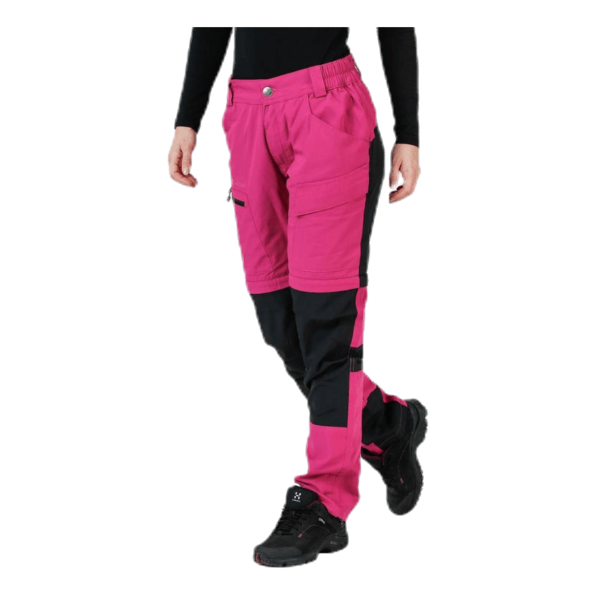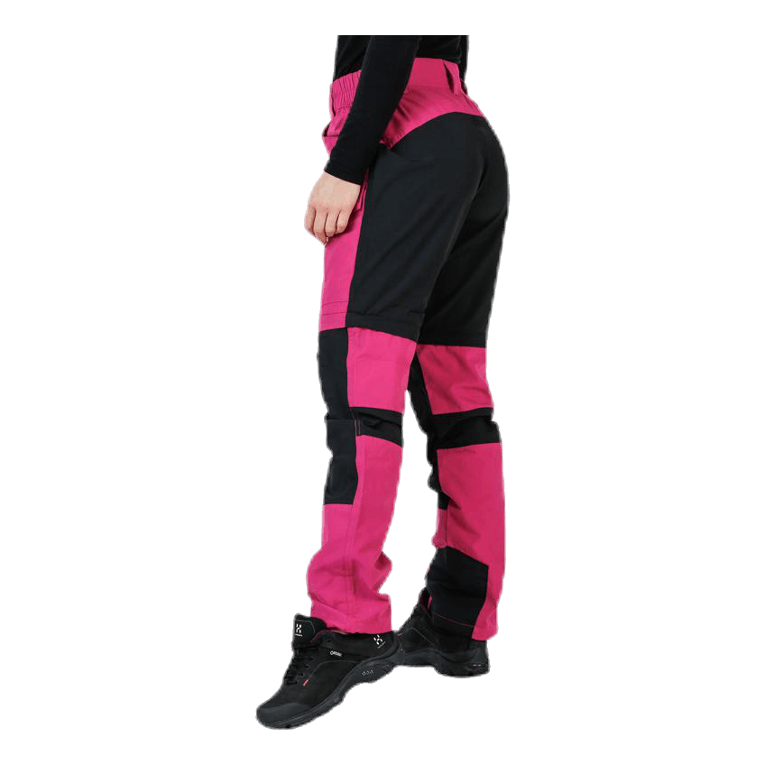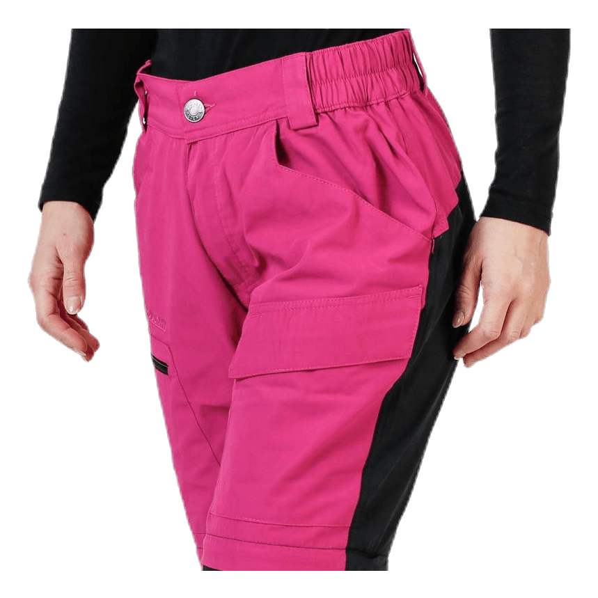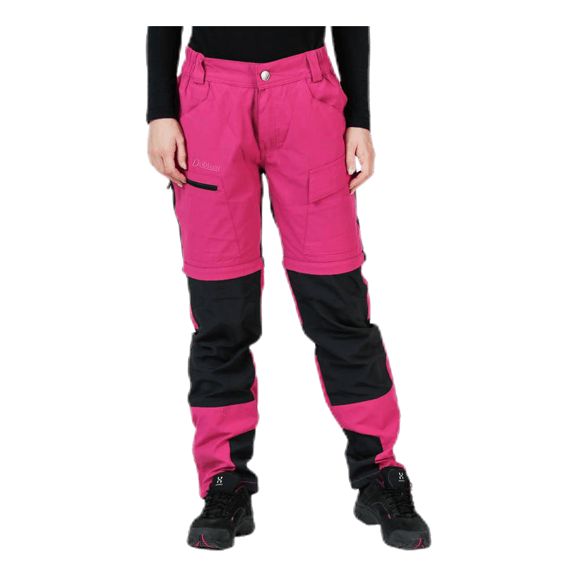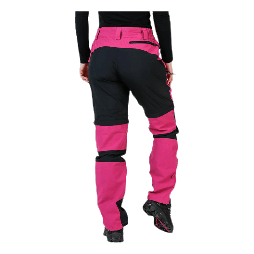 Lahke in prilagodljive hlače Zipoff. Funkcija zipoff spremeni hlače v kratke hlače. Plošče se raztegnejo v 4 smeri za boljše udobje in prileganje. Majhna elastika ob straneh omogoča fleksibilnost v pasu. Dva stranska žepa, zadnji žep z zadrgo, žep na nogah z zadrgo in žep za noge z ježkom. Glavni material 65% poliester 35% bombaž, plošče 92% poliester 8% spandex.