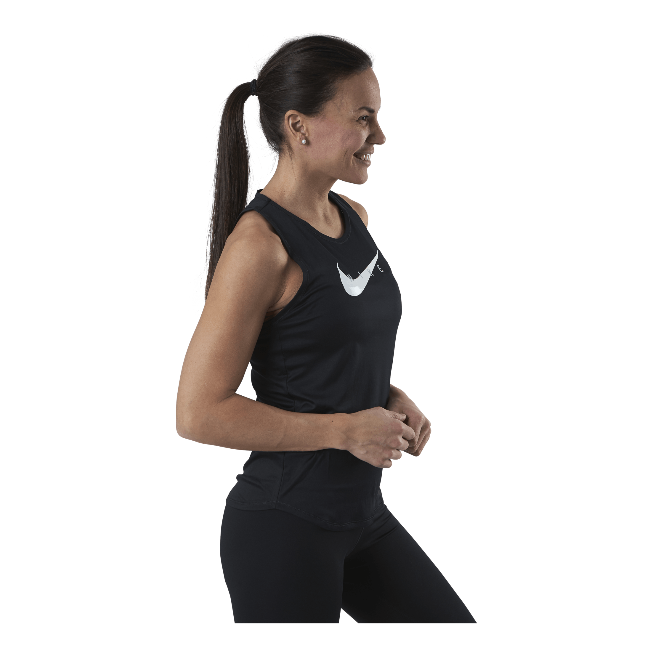 Pojdite po njem z novim tekom. Nike Swoosh Run Tank je lahek in ima videz, ki se ponaša s svežimi detajli. Njegova zasnova dirkalnika vam pomaga, da se premikate, ko se premikate skozi kilometre. 100 % POLIESTER