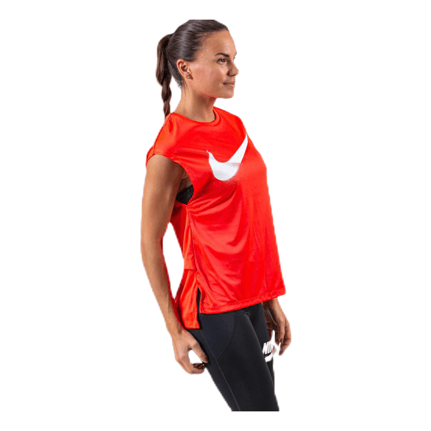 Pohitite z ženskimi tekaškimi majicami Nike Dri-FIT. Majica je zasnovana za pretok zraka med tekom in ima na hrbtu režo, ki zagotavlja prezračevanje tam, kjer ga potrebujete.