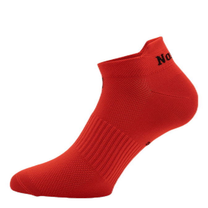 Podaljšana zadnja loputa, ki preprečuje zdrs nogavice navzdol. Konstrukcija iz poliamidne tkanine za hiter prenos vlage in dobro zračnost. zgornji del prstov.